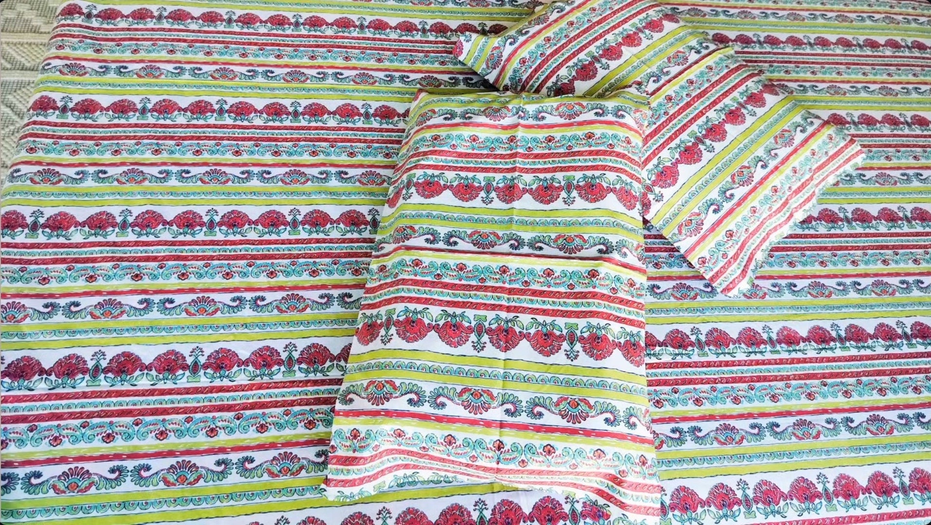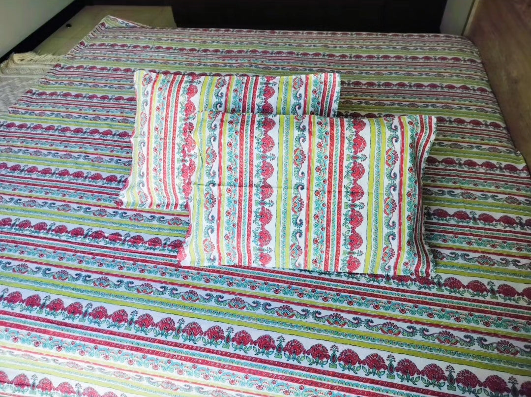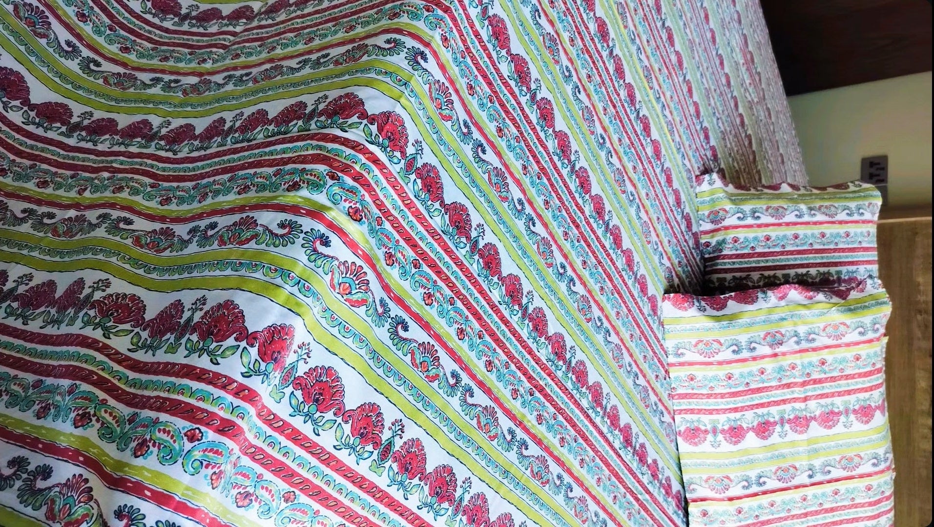 A refreshing blend of lively florals and vibrant stripes for a cheerful bedroom vibe.